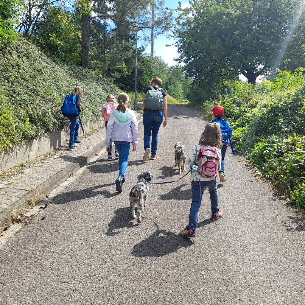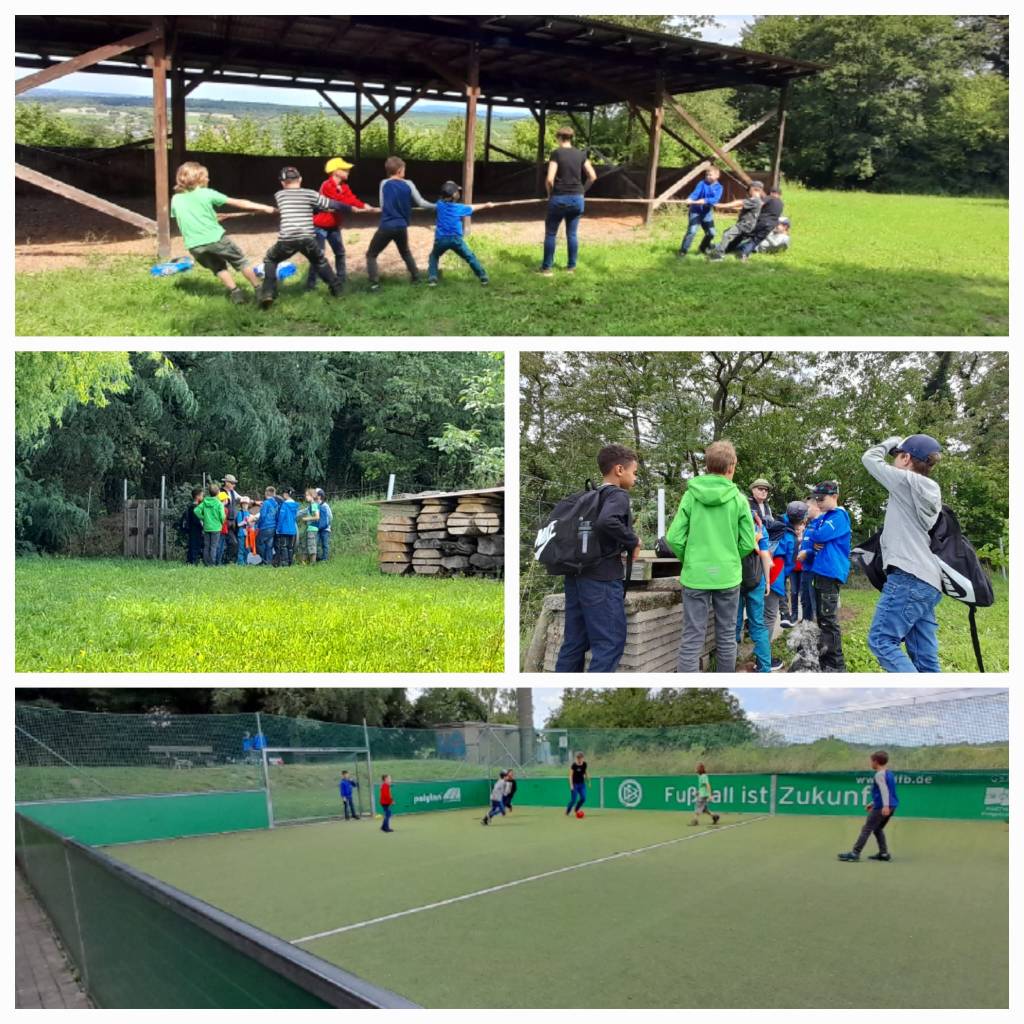 Am 08.08.23 wagten sich, in zwei Gruppen aufgeteilt, insgesamt zehn Jungs und vier Mädels auf die Spurensuche und räuberten auf neuer Strecke durch das Unterholz Zeuterns. Gestartet wurde um elf Uhr mit neun mutigen Jungs, von denen wir schon den ein oder anderen bei unseren vorherigen Veranstaltungen kennenlernen durften. Es ist immer schön zu sehen, wenn es den Teilnehmenden bei uns so sehr gefällt, dass sie auch in den Folgejahren den Weg zu uns zurückfinden (Liebe Grüße an die entsprechenden Familien und Rumräuber!). Motiviert etwas Neues anbieten zu können führte uns der Weg diesmal nicht in den Eisengrubenwald, sondern quasi auf die andere Seite ins Himmelreich. Besonders aufregend erwies sich hier die kurzfristige Station am Bolzplatz hinter der Grundschule Zeutern, wo es zu einem Fußball Derby „Stettfelder Jungs“ gegen den Rest kam. Lediglich zwei Jungs, die beiden Hunde Akira und Kawaii, sowie eine der zwei Betreuerinnen des Programmpunktes hielten sich außerhalb des Spielfeldes auf, streunerten herum oder fungierten als Cheerleader oder Schiedsrichter. Nach diesem aufregenden Stopp ging es unverhofft spannend weiter. Otto Zimmerer, ein Ur-Zeutermer, lud uns kurzfristig dazu ein ihn und seinen langenbrückener Begleiter beim Bogenschießen zu beobachten. Mit vielen Informationen versorgt durften wir so auch diesen Bereich des „Räuber-Tums“ kennenlernen. Zustande kam die Kooperation durch ein spontanes Treffen kurz vor dem Programmpunkt – lieben Dank Otto, dass wir Dich und Euch so kurzfristig besuchen durften! Es war wirklich sehr spannend für uns alle. Danke auch, dass wir selbst probieren durften den Bogen zu spannen, um so zumindest auf die Zielscheibe zu treffen. Unser Weg führte uns dann weiter durch Felder und Hohlwege. Allgemein stand neben Wissen und Rätseln auch das Toben und Räubern auf unserem Programm. Durch insgesamt acht Stationen konnten wir uns im „Räubersein“ ausbilden und angekommen im Himmelreich dann mit Getränken und Snacks stärken. Unverhofft wurden dort, neben dem eigentlichen Süßigkeiten-Schatz, auch geheimnisvolle Dinge und Orte im Waldbereich gefunden. Insgesamt ein sehr gelungener Mittag.