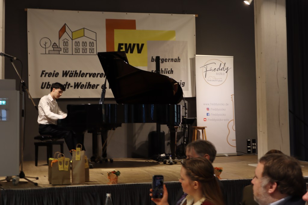 Musikalisch wurden wir während dem offiziellen Teil von unserem Mitglied Tim Peter auf dem Klavier begleitet – während „Clair de Lune“ von C. Debussy floss das ein oder andere Tränchen. Während des kulinarischen Ausklangs unterhielt Freddy Sicko, auch FWV Mitglied, mit Gitarre und Gesang. Das Buffet hierzu wurde von Salam Bsul (Salamhomecooking) beigesteuert – sehr zu empfehlen!